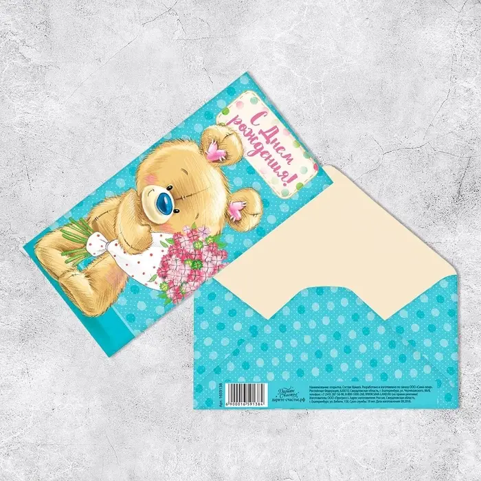 Конверт для денег «С Днем Рождения», 16.5×8 см