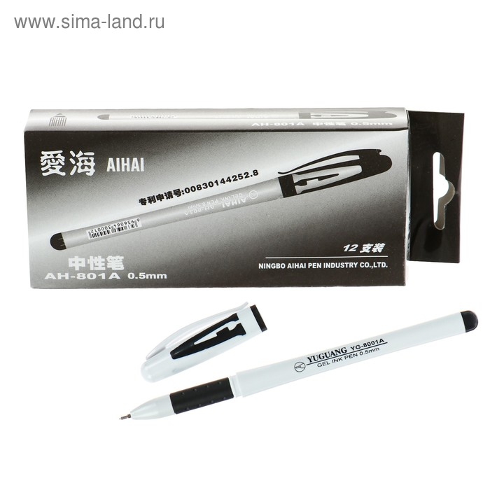 Ручка гелевая, 0.5 мм, чёрный, корпус белый, с резиновым держателем