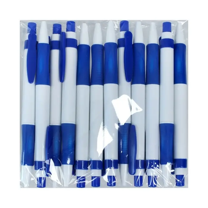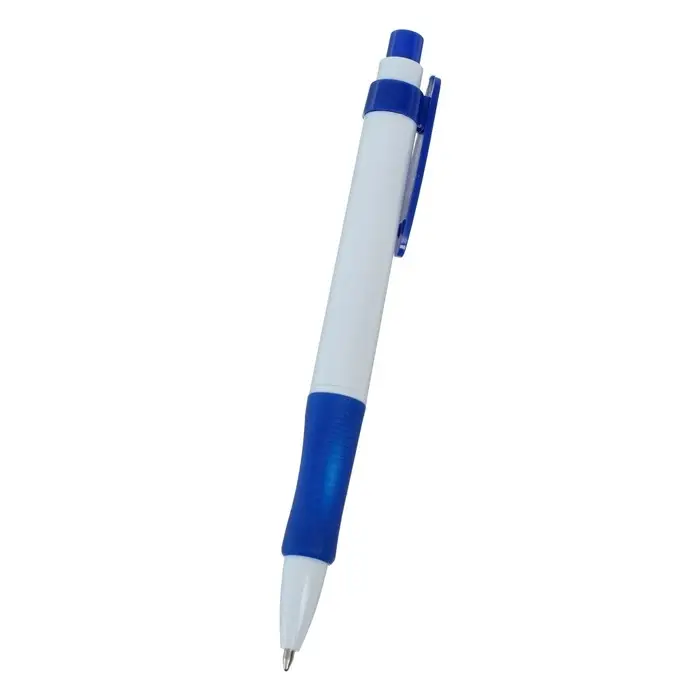 Ручка шариковая автоматическая, 0.7 мм, стержень синий, белый корпус, с резиновым держателем