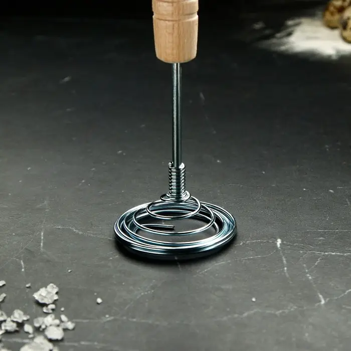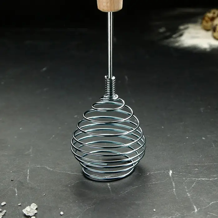 Венчик прочный и надежный, что позволяет использовать его для смешивания различных ингредиентов, таких как мука, сахар, яйца, масло и другие продукты.
