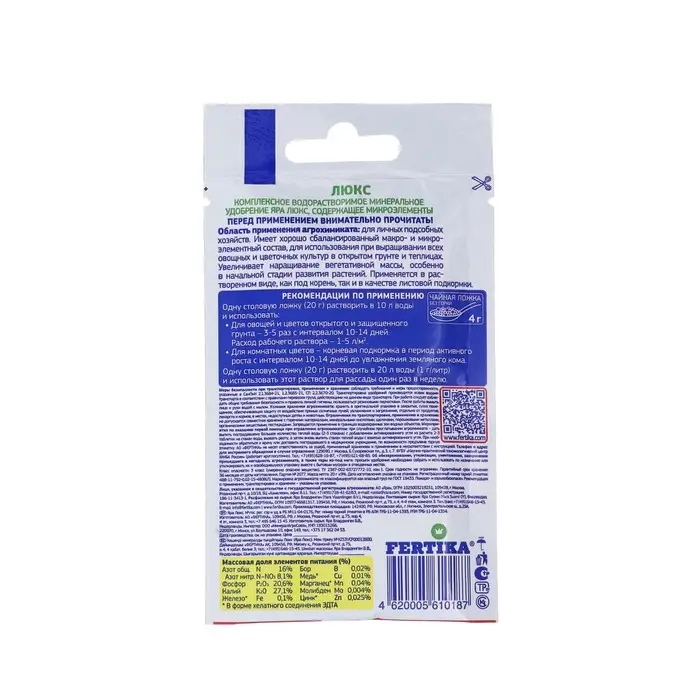 «Fertika Люкс» — это комплексное мелкокристаллическое, полностью водорастворимое удобрение. Оно предназначено для подкормок всех комнатных растений, овощных культур, цветов и рассады.