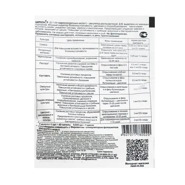 Регулятор роста, природный корнеобразователь ЦИРКОН 1 мл