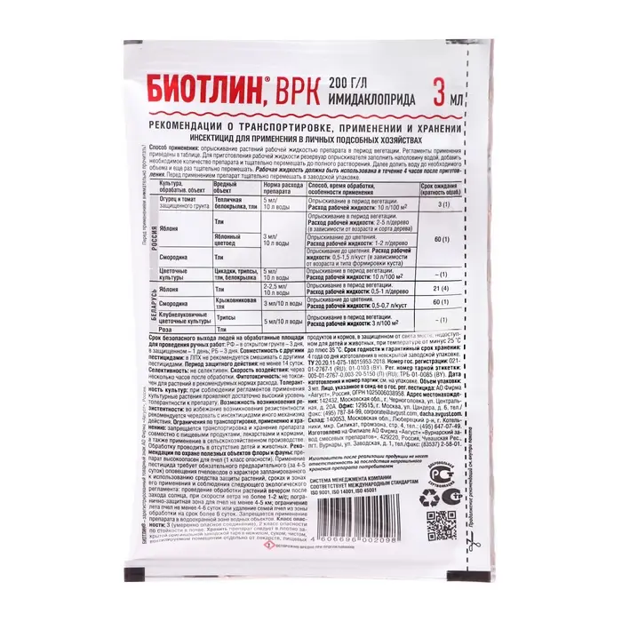 Средство от тли на всех культурах Биотлин ампула в пак. 3 мл