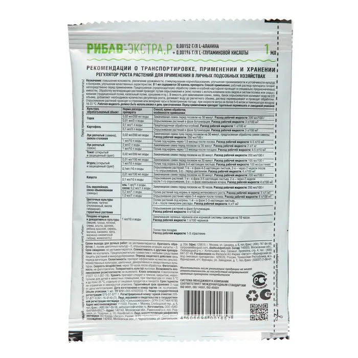 Регулятор роста природный Рибав-Экстра ампула, 1 мл