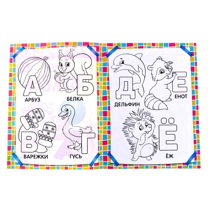 Раскраска «Учим буквы» — универсальный выбор подарка для малыша на любой праздник.