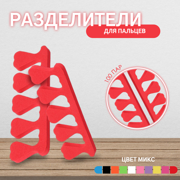Набор разделителей для пальцев, 100 пар, цвет МИКС