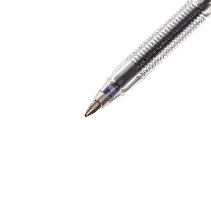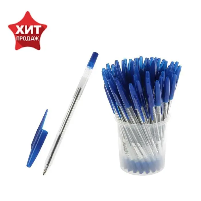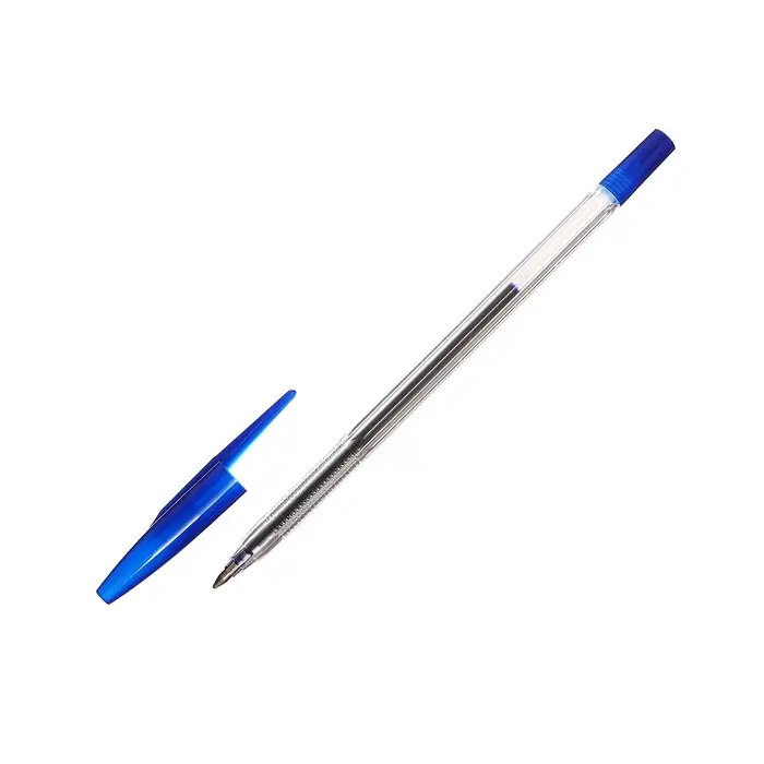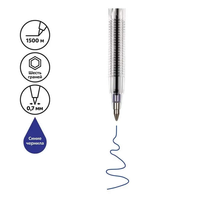 Ручка шариковая с синим стержнем. Вентилируемый колпачок надёжно фиксируется на корпусе ручки. Специальные насечки на корпусе для удобного захвата. Синие чернила на масляной основе. Толщина линии письма 0,7 мм. Длина стержня 130 мм. На каждой ручке имеется штрихкод.