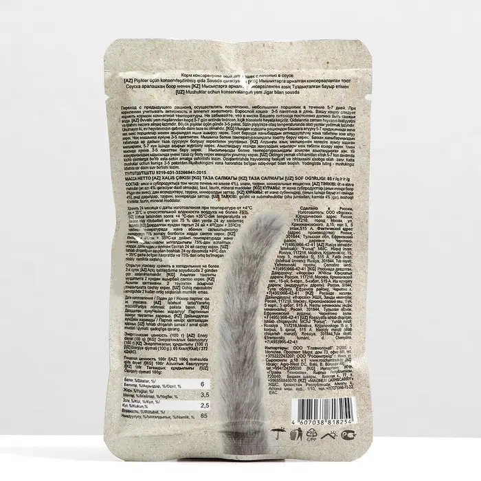 Влажные корма для кошек используются в разных смешанных рационах. Их можно давать в дополнение к натуральной пище или сухим гранулам. Норма кормления указана на упаковке.