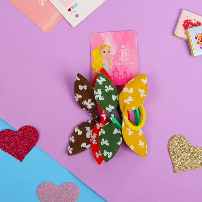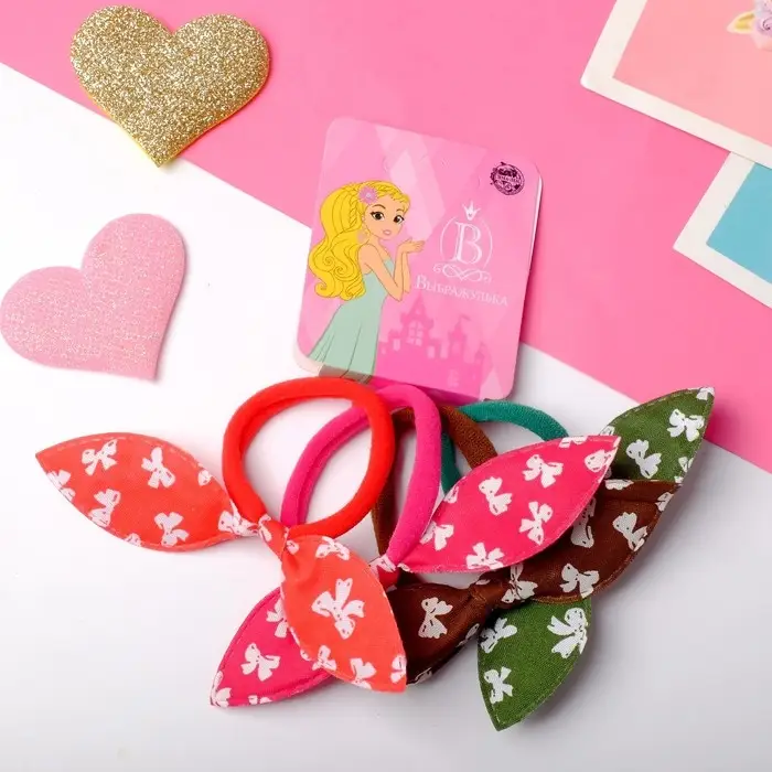 Резинка для волос "Веселые ушки" (набор 4 шт) бантик, микс