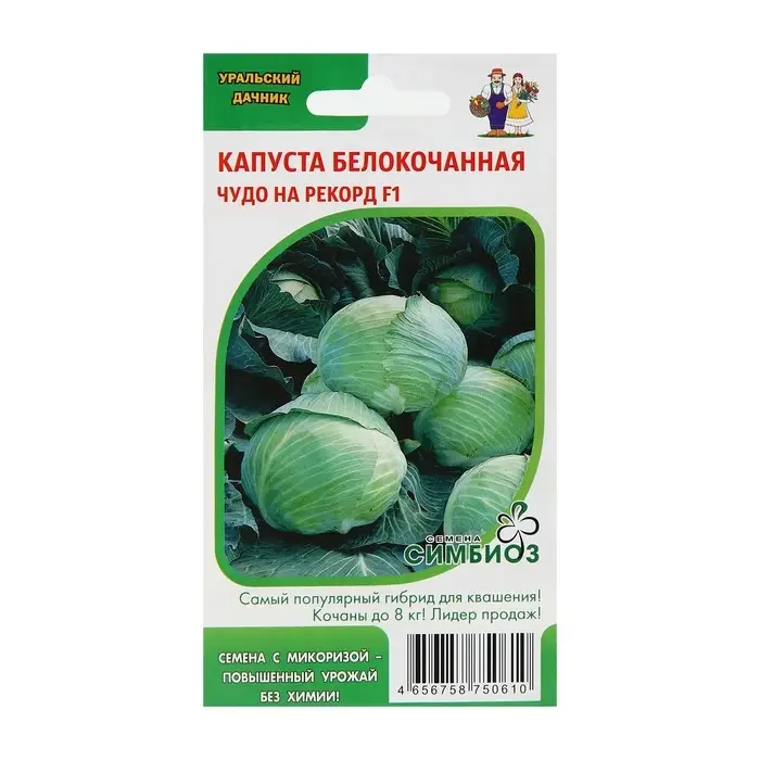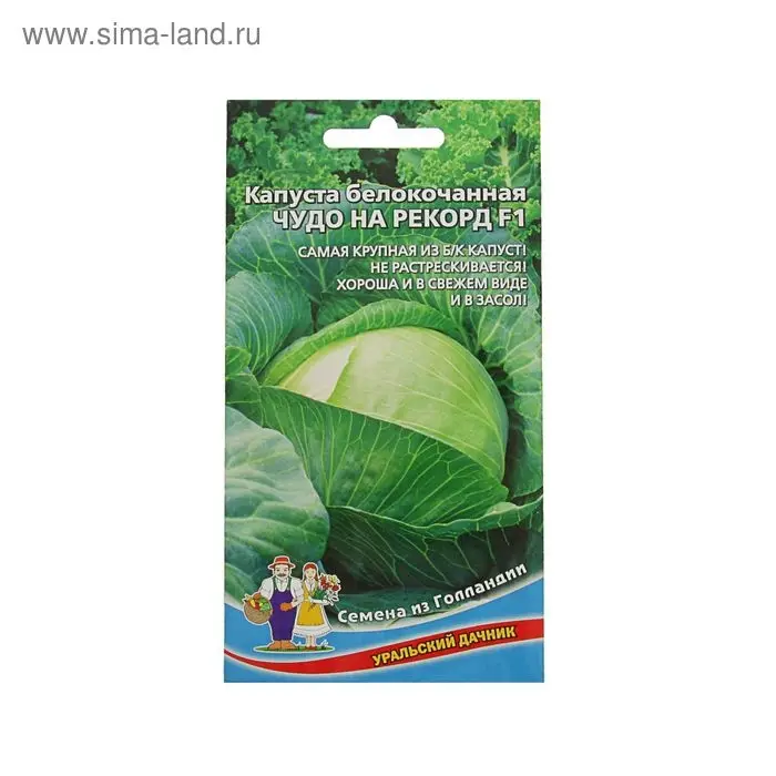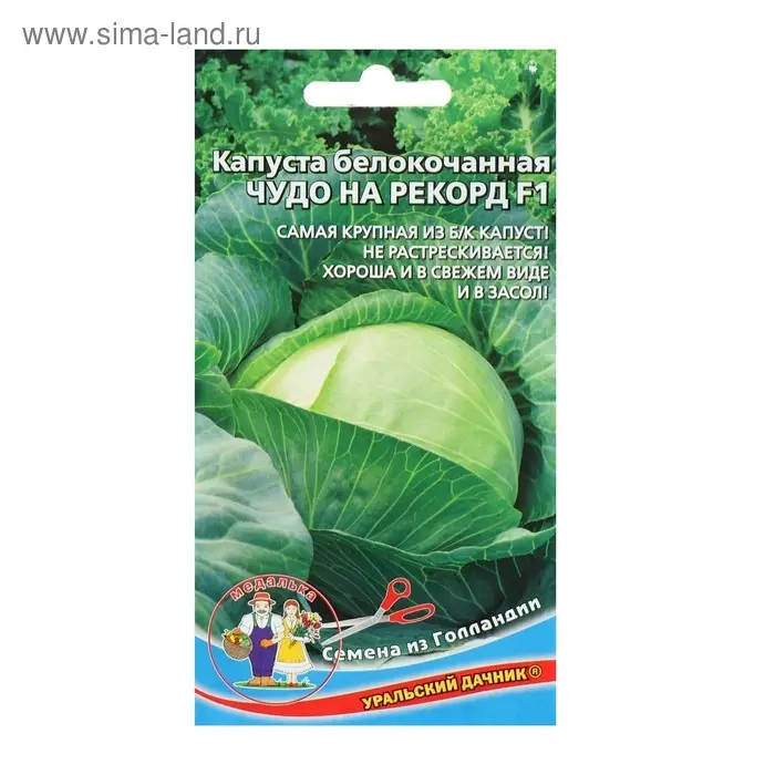 Капуста «Чудо на рекорд» — это среднеспелый высокоурожайный гибрид. Плотный, хрустящий кочан массой до 17 кг обладает сочным вкусом и устойчив к растрескиванию. Употребляется в свежем и квашеном виде, подходит для непродолжительного хранения.