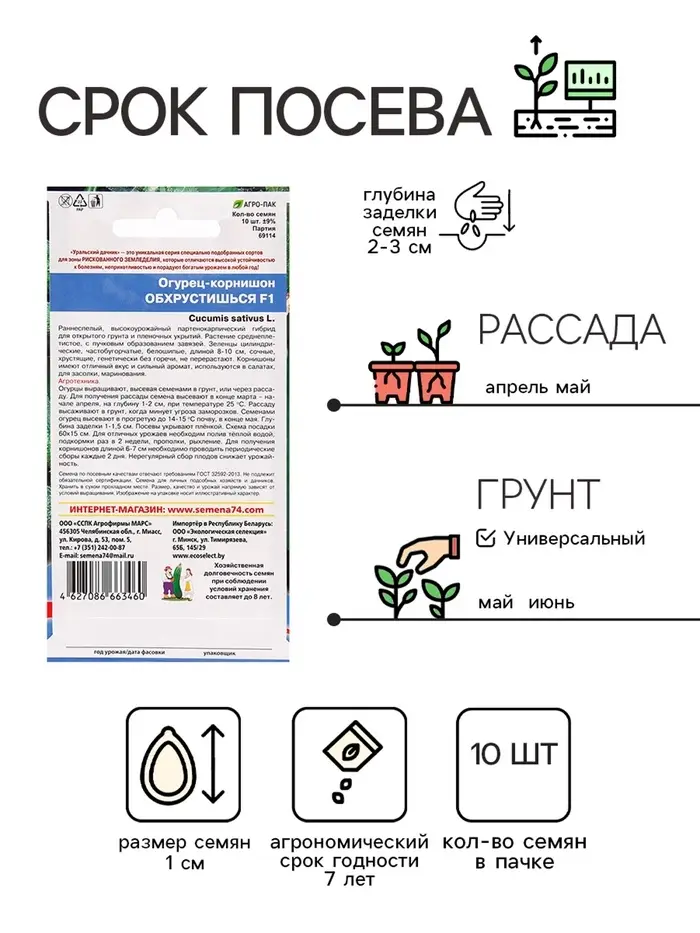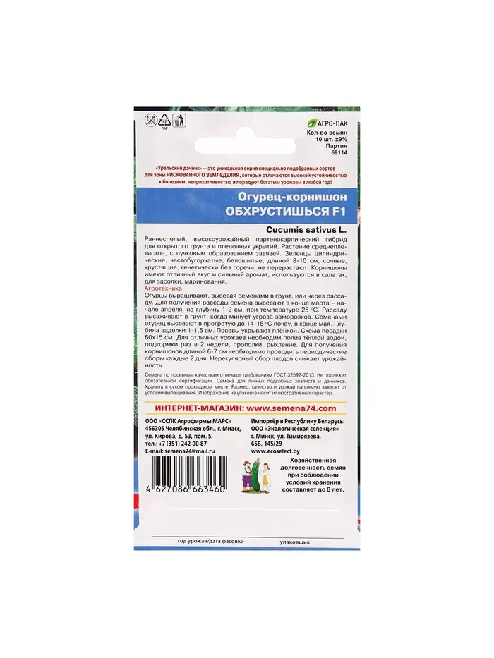 Семена Огурец "Обхрустишься" F1, раннеспелый, партенокарпический, 10 шт
