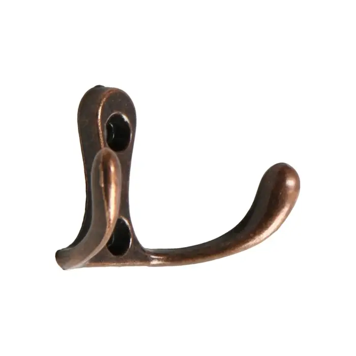 Крючок мебельный ТУНДРА TKd=005, двухрожковый, медь, 5 шт.