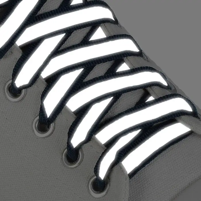 Светящиеся шнурки — отличное решение для детской и подростковой обуви, а также для тех, кто любит поздние прогулки. Они отражают свет и заранее предупреждают водителей о вашем приближении.
