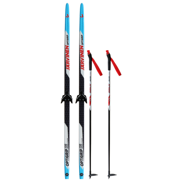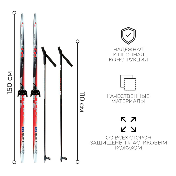 Комплект лыжный: пластиковые лыжи 150 см без насечек, стеклопластиковые палки 110 см, крепления NN75 мм, цвета МИКС
