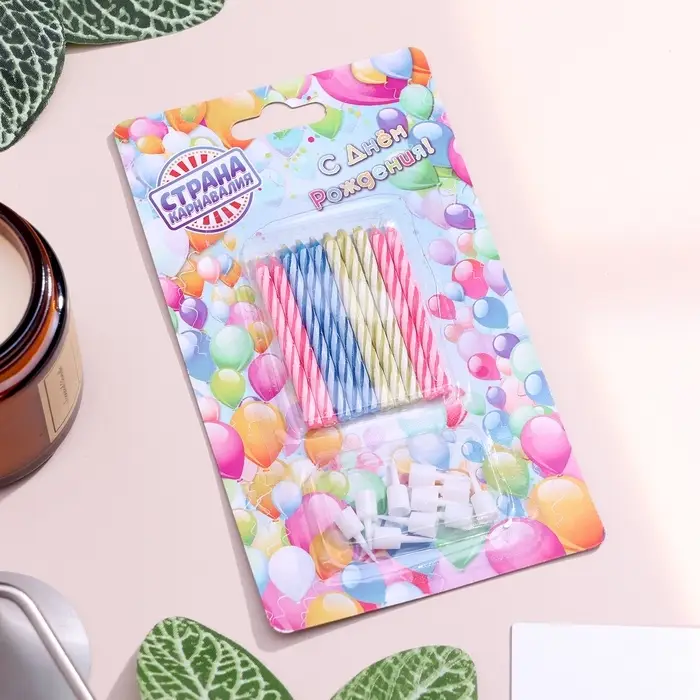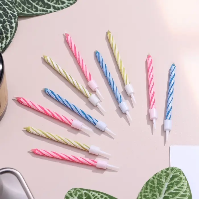 Свечи для торта «Спираль», незадуваемые, 10 шт., 10 подставок