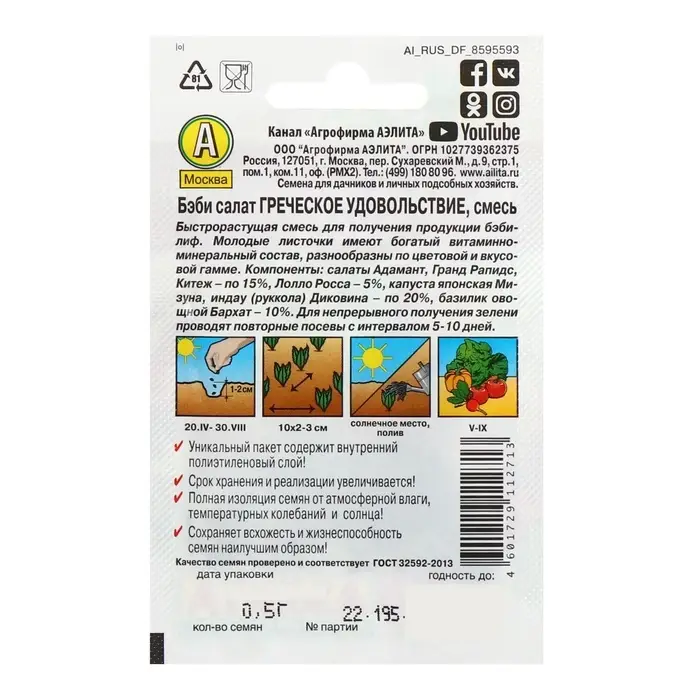 Семена Бэби салат "Греческое удовольствие" "Лидер", смесь, 0,5 г ,