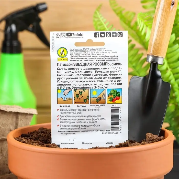 Благодаря внутреннему полиэтиленовому слою пакет не пропускает влагу и увеличивает срок годности семян до 2-ух лет.