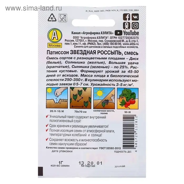 Семена Патиссон Звездная россыпь" "Лидер", смесь, 1 г ,