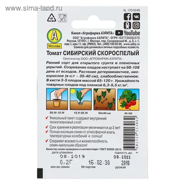 Благодаря внутреннему полиэтиленовому слою пакет не пропускает влагу и увеличивает срок годности семян до 2 лет.