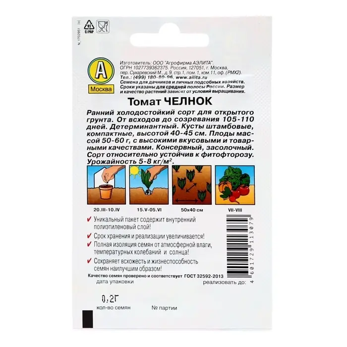 Благодаря внутреннему полиэтиленовому слою пакет не пропускает влагу и увеличивает срок годности семян до 2-ух лет.