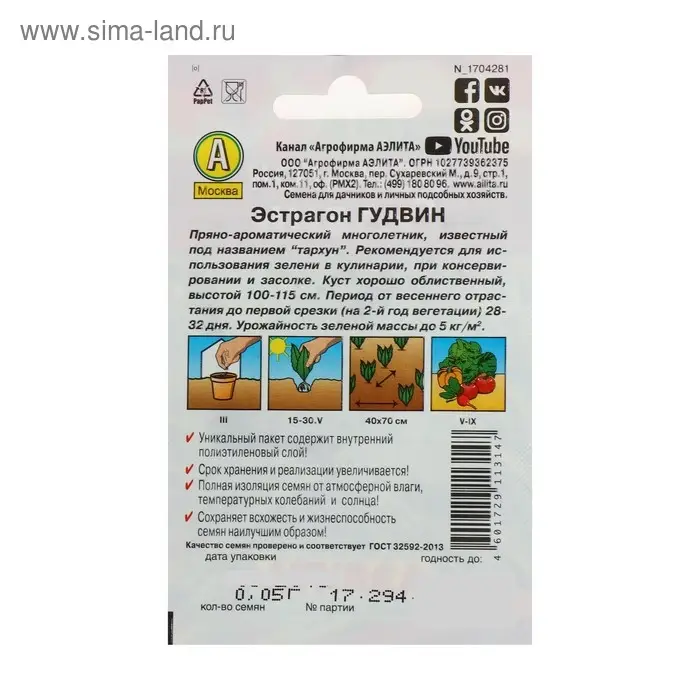 Семена Эстрагон "Гудвин" 0,1 г