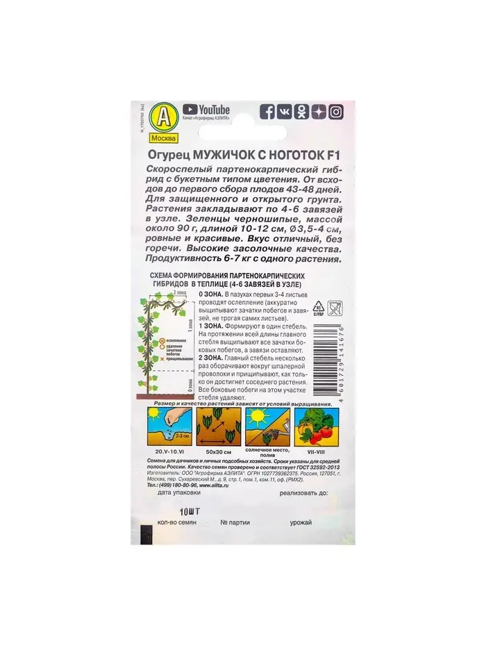Семена Огурец "Мужичок с ноготок" F1, среднеранний, партенокарпический, 10 шт