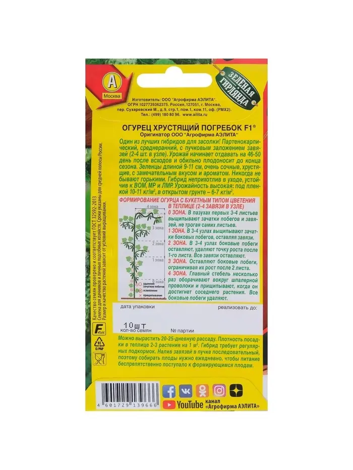 Семена Огурец "Хрустящий погребок F1", 10 шт.