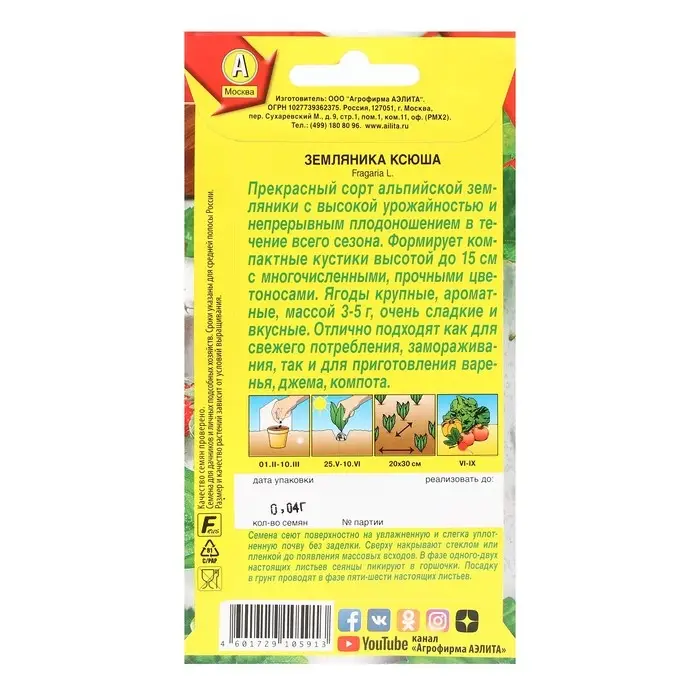 Семена Земляника "Ксюша" альпийская , 0,04 г