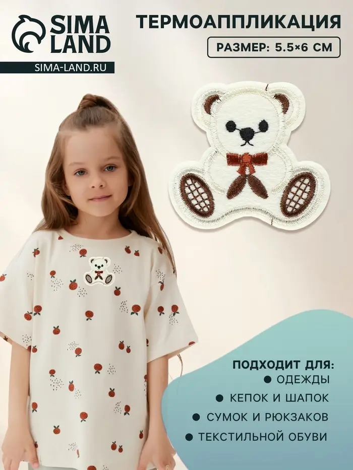 Термоаппликации «Мишка с бантиком» — это милые и уютные декоративные элементы для текстиля с детской тематикой. Аппликации выполнены в виде очаровательных медвежат с бантиками, что делает их идеальными для создания теплых образов.