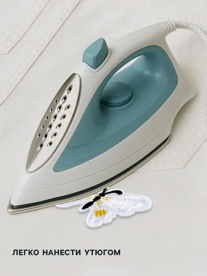 - Простота в использовании: термонаклейка позволяет быстро и легко приклеить аппликацию на любую текстильную поверхность — достаточно нагреть и приклеить!