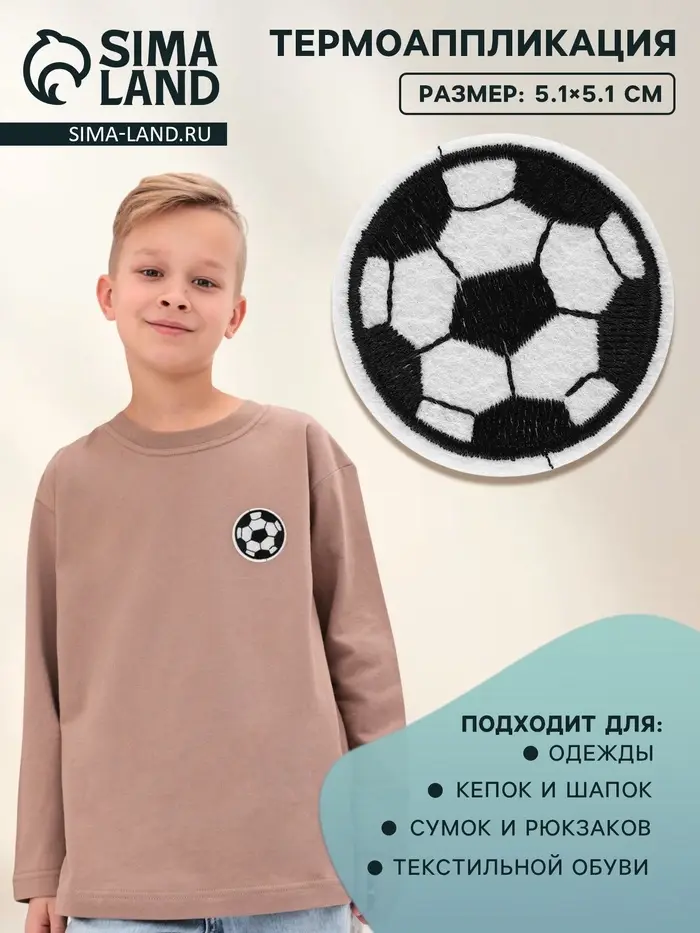 Добавьте спортивный стиль в детский гардероб! Термоаппликация «Футбольный мяч» (5,1 см) — это простой способ обновить футболки, толстовки или рюкзаки. Набор подходит для декора детской одежды, аксессуаров и текстиля. Аппликации легко закрепляются утюгом и делают вещи индивидуальными.