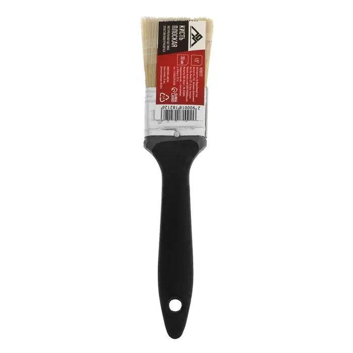 Кисть плоская ЛОМ, натуральная щетина, пластиковая рукоятка, 1.5", 38 мм