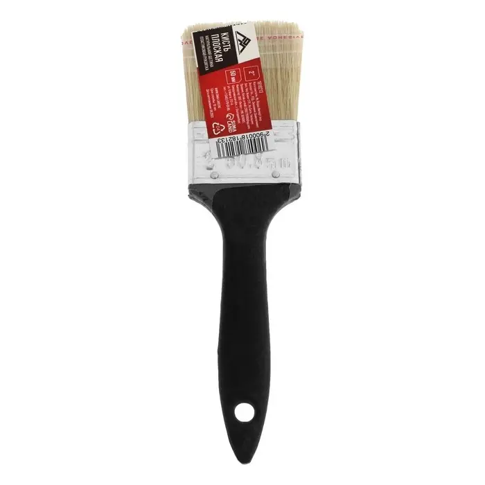 Кисть плоская ЛОМ, натуральная щетина, пластиковая рукоятка, 2", 50 мм