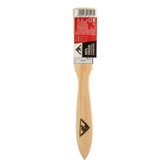 Кисть плоская ЛОМ, натуральная щетина, деревянная рукоятка, 1", 25 мм
