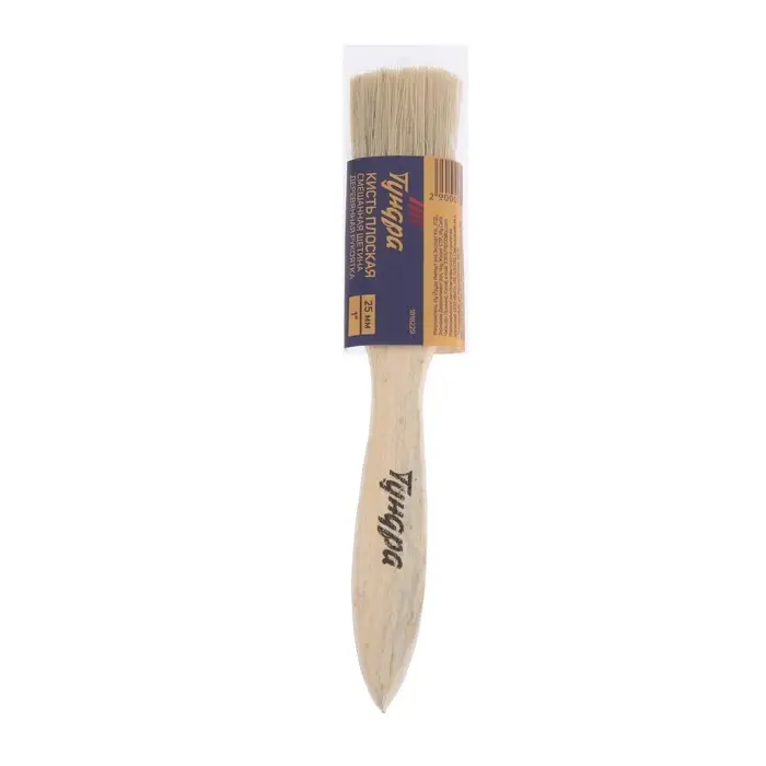Кисть плоская ТУНДРА, смешанная щетина, деревянная рукоятка, 1", 25 мм