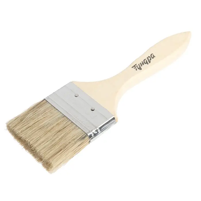 Кисть плоская ТУНДРА, смешанная щетина, деревянная рукоятка, 2.5", 63 мм