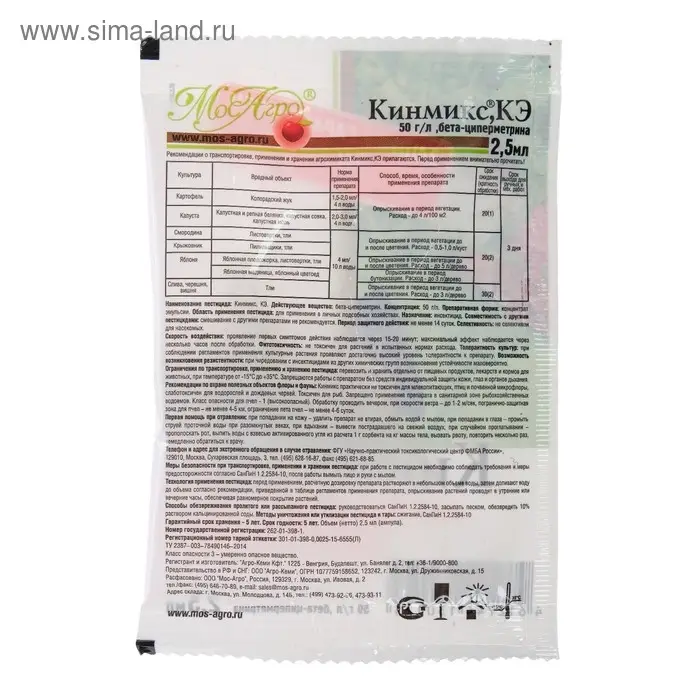 Средство от колорадского жука и др вредителей Кинмикс, амп. в пакете, 2,5 мл