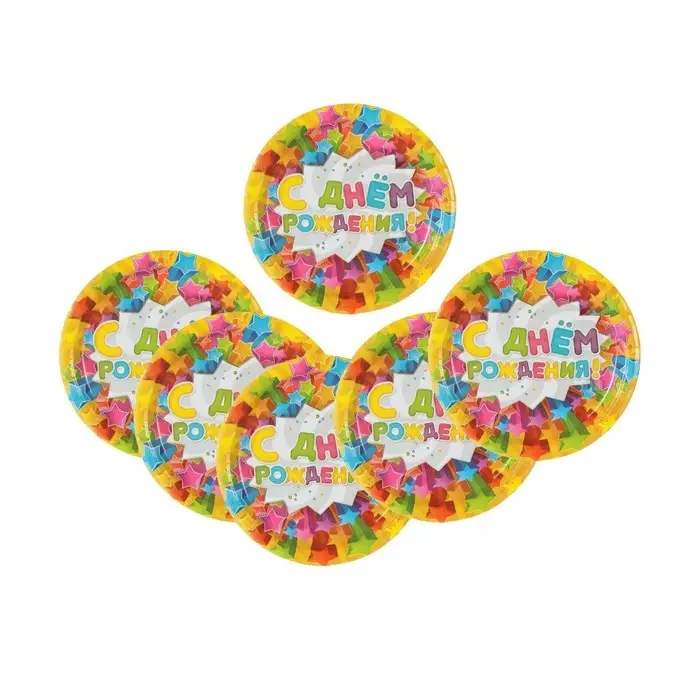 Тарелка одноразовая бумажная «С днем рождения», 18 см