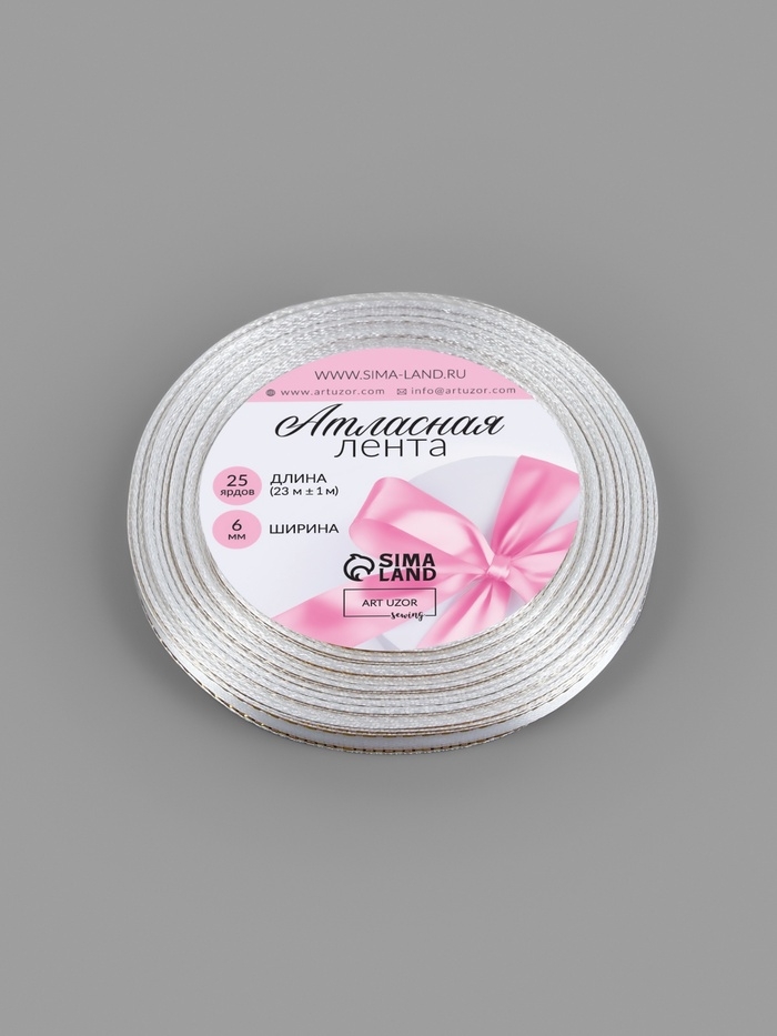 Лента атласная, с золотым люрексом, 6 мм, 23±1 м, белая №001