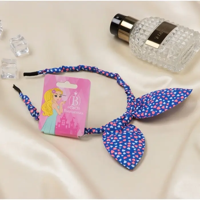 Ободок для волос Выбражулька «Веселые ушки», сердечки, синий