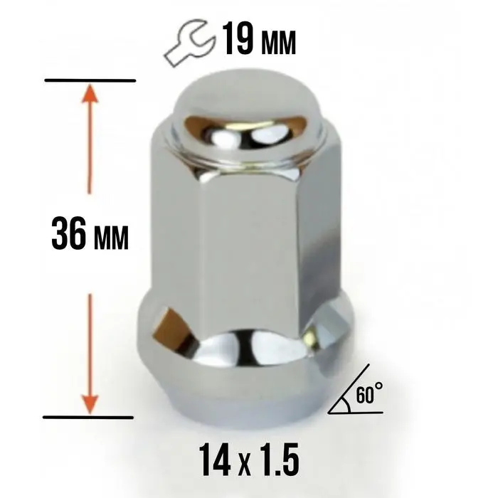 Гайка колёсная под 19 ключ, 14×1.5 мм, конус, хром, набор 10 шт