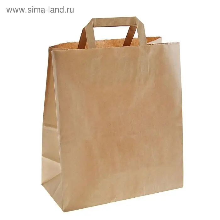 Пакет крафт без печати, плоская ручка 24×14×28 см