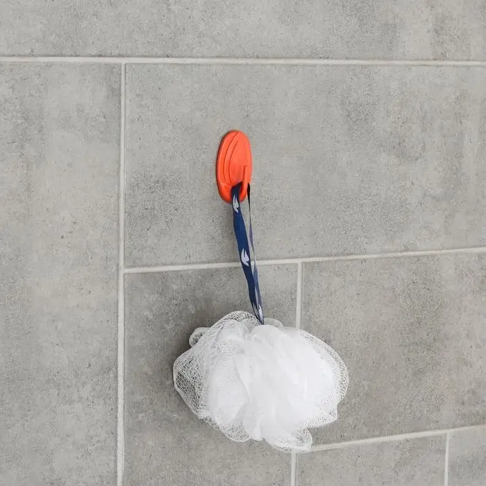 Установка такого держателя занимает буквально считанные секунды и не требует сверления стены. Самоклеющаяся фурнитура удобна ещё и тем, что её можно прикрепить непосредственно на плитку над ванной и повесить на неё мочалки, детские игрушки и различные мелочи.