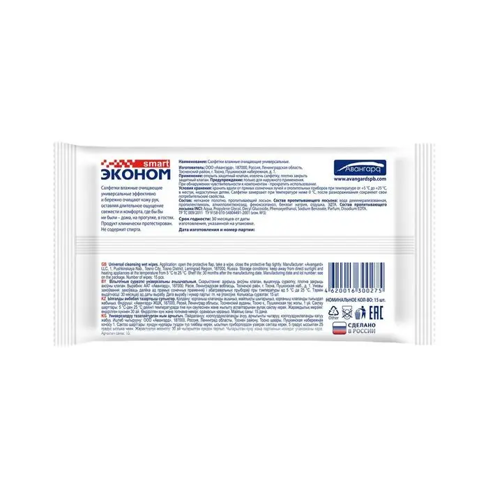 Влажные салфетки «Эконом Smart» бережно очищают кожу и оставляют длительное ощущение свежести и комфорта, где бы вы ни находились: дома, на прогулке, в гостях.