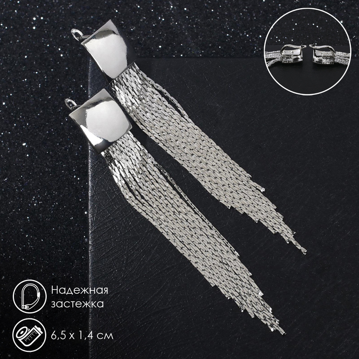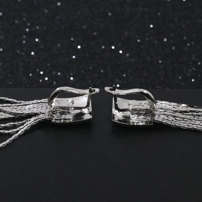 Серьги висячие «Голливуд» квадрат и нити, цвет серебро, 6,5 см