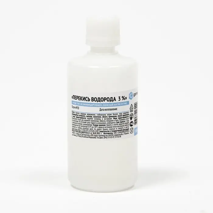 - Действующее вещество: перекись водорода 50% - от 5 г до 6,12 г в зависимости oт содержания водорода пероксида в исходной субстанции - эквивалентно содержанию водорода пероксида 3 г.