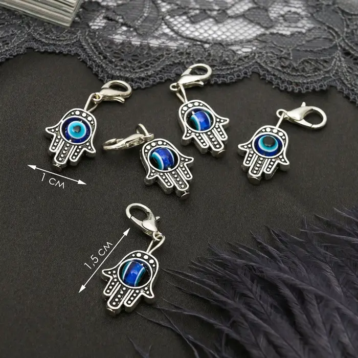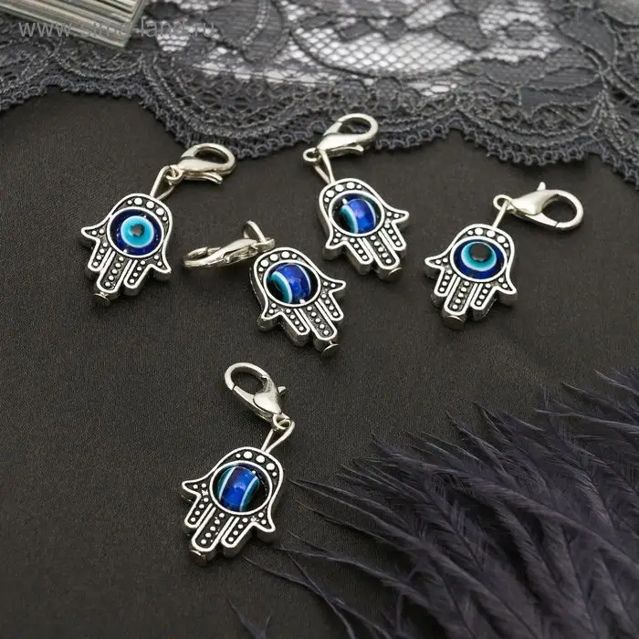 Шарм для браслета «Оберег» рука Хамса, цвет синий в серебре