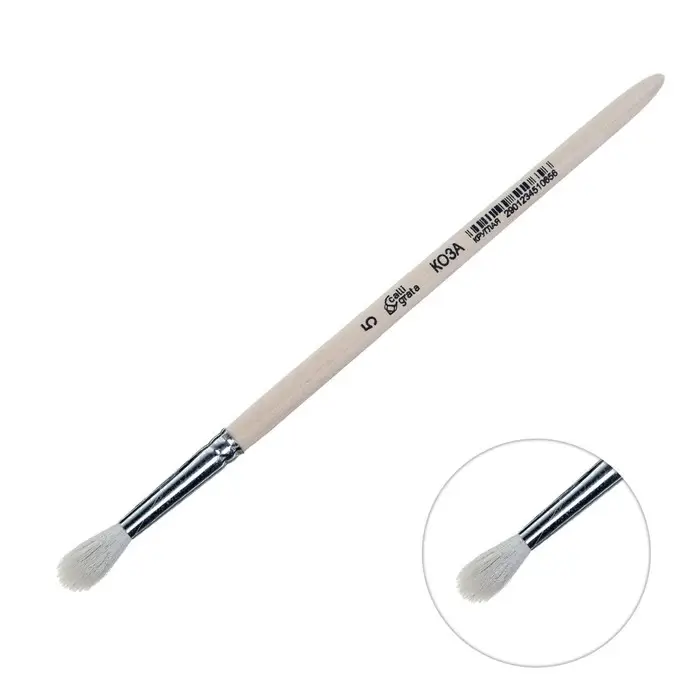 Кисть для рисования, Коза круглая №5 (диаметр обоймы 5 мм; длина волоса 20 мм), деревянная ручка, Calligrata