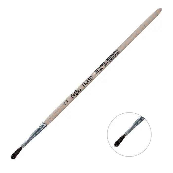 Кисть для рисования, пони, № 2, Calligrata, круглая, деревянная ручка