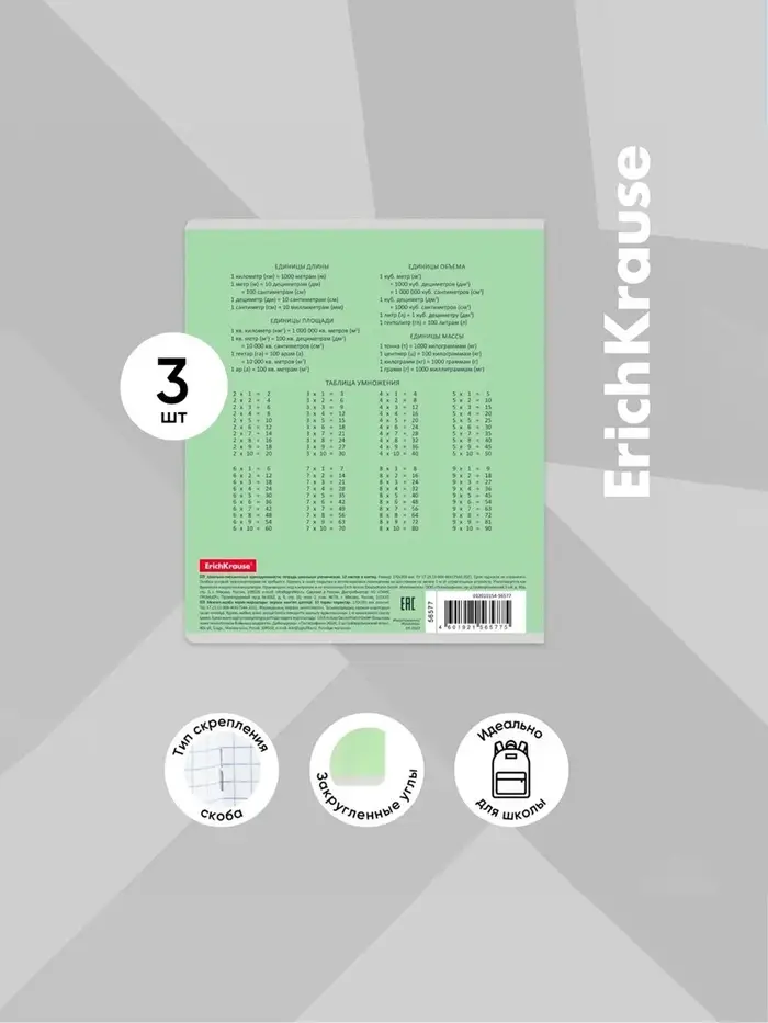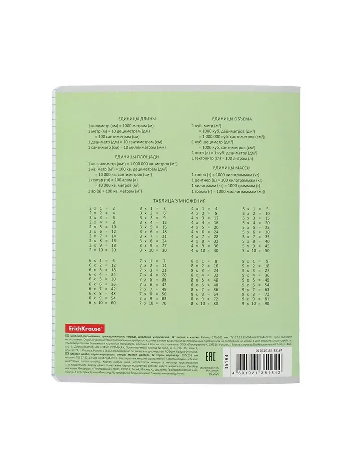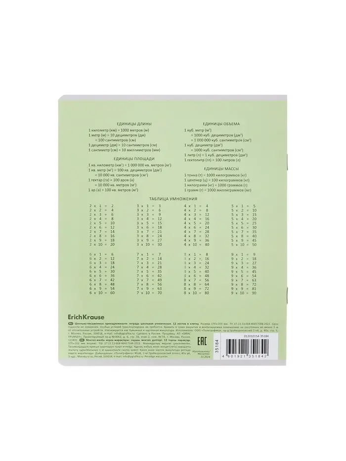 Тетрадь школьная ученическая формата А5+ (170х203 мм). Обложка из высококачественного мелованного картона плотностью 180 г/м2. В блоке 12 листов в клетку с полями. Бумага офсетная плотностью 60 г/м2. Цвет линовки - синий. Скругленные уголки обложки и блока. Тип скрепления - скоба. Тетради упакованы в термоусадочную пленку по 10 штук.